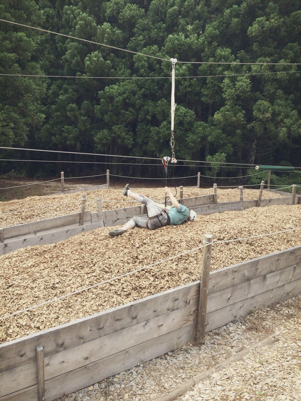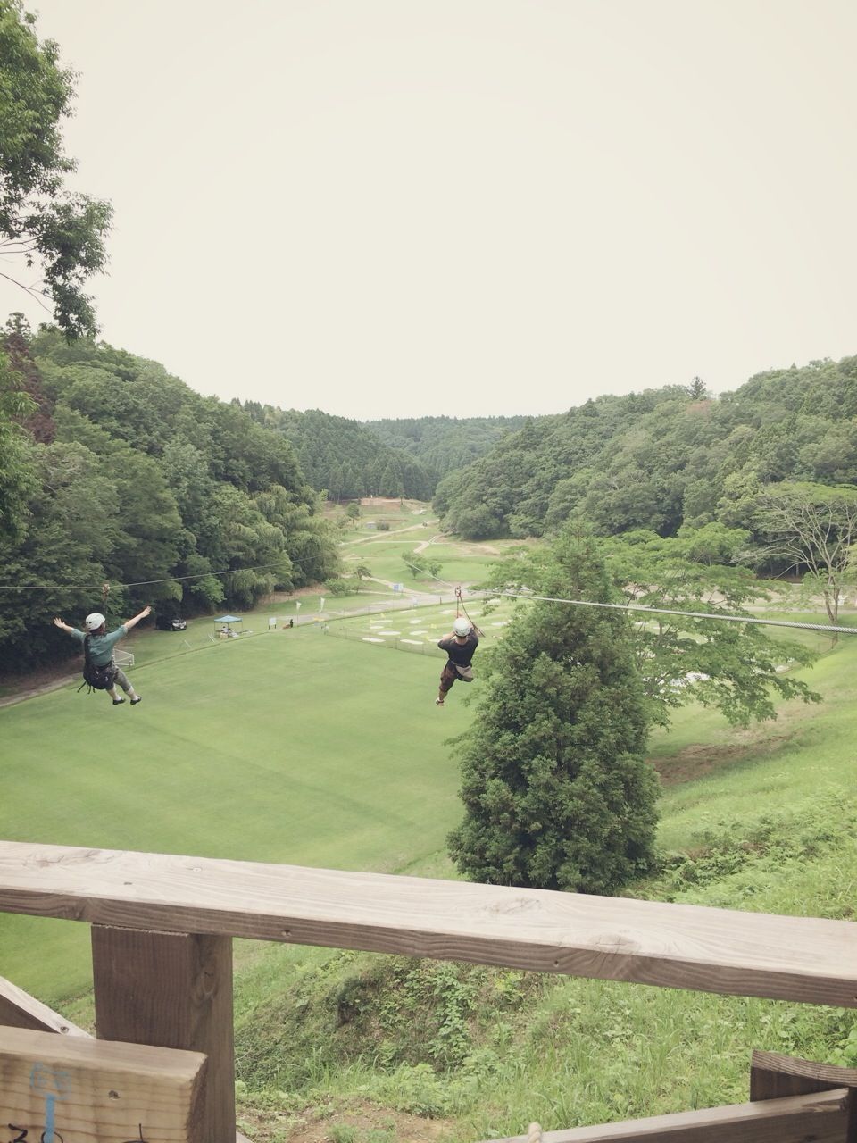 最初は高さとワイヤー2本だけで滑りおりるのにちょっと恐怖感あったけど、