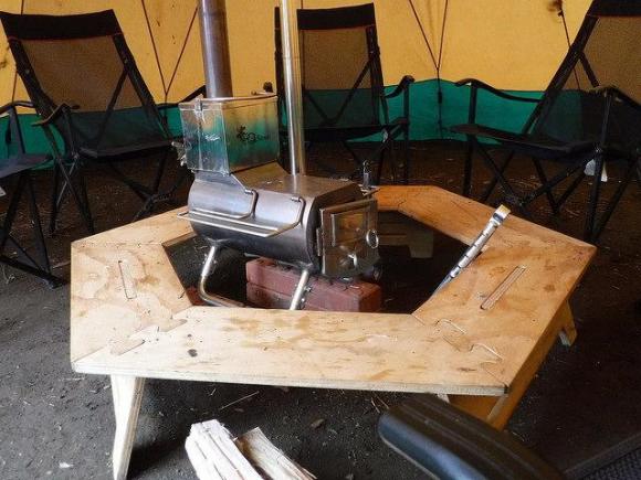 薪ストーブで歓談する専用のテントなんて、すごく羨ましい贅沢な過ごし方ですよね。